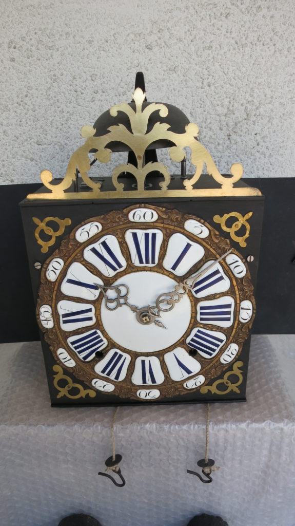 Comtoise Uhr mit Email Cartuschen Zifferblatt